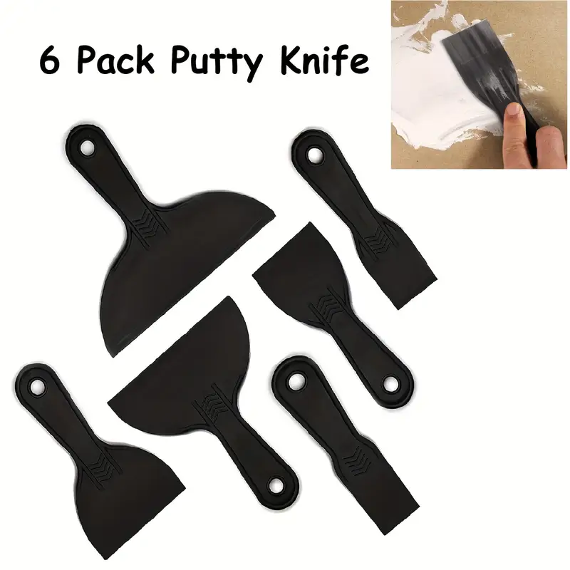6 Pack Flexible Plastic Putty Knives for Spackling
